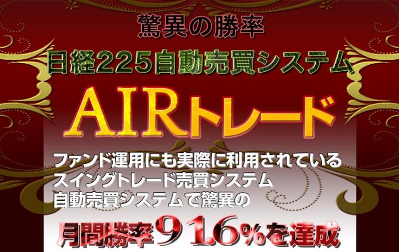 ⇒特典付き「日経225自動売買システム「AIRトレード」」の詳細はこちら!