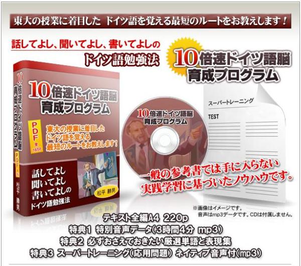 ⇒特典付き「10倍速ドイツ語脳育成プログラム」の詳細はこちら!