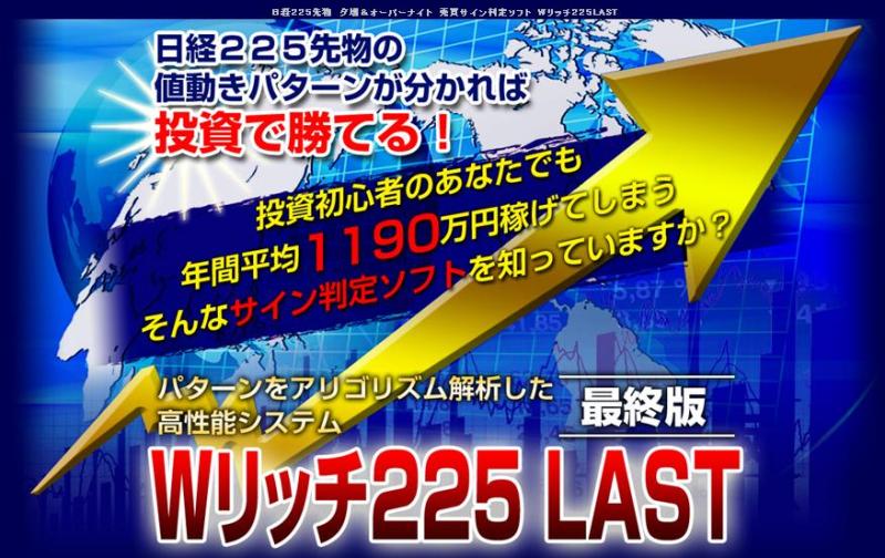投資といってもたくさんの投資先があります。近年、FXばかり注目を浴びる個人投資ですが日経225先物は、初心者の方がシステムトレードするには最適の投資先だと思います!Wリッチ225LAST