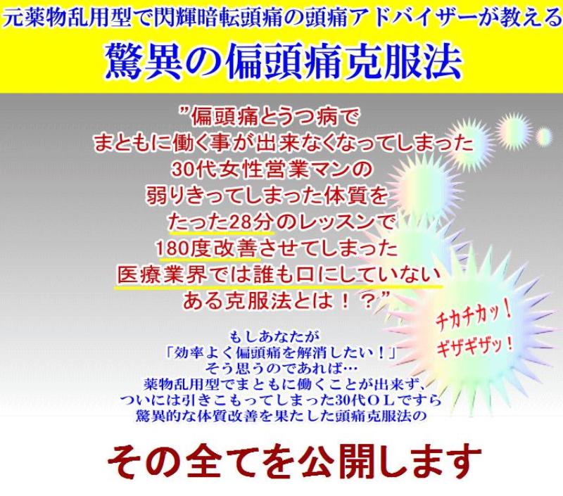 ⇒特典付き「病院では教えてくれない偏頭痛克服プログラム」の詳細はこちら!